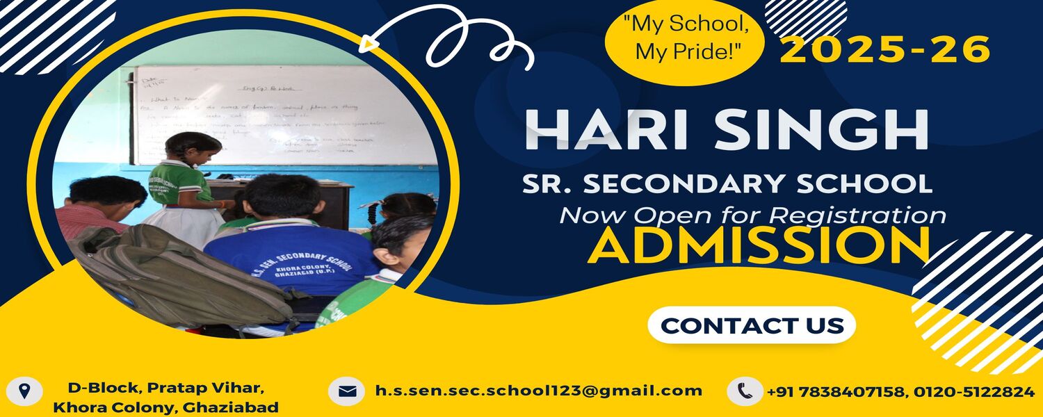 Hari Singh Senior Secondary School, located in the heart of Khora, Ghaziabad, is a recognized institution dedicated to nurturing young minds and shaping the future of our nation. Established with a vision to provide quality and affordable education to all, our school has become a beacon of academic excellence, moral values, and holistic development.