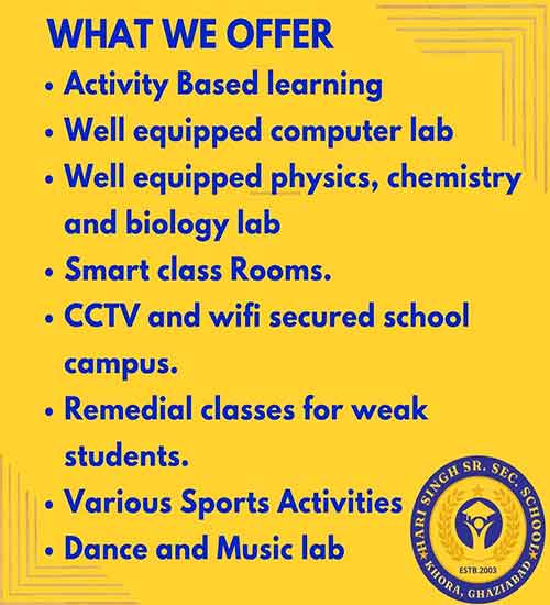 Hari Singh Senior Secondary School while following the CBSE pattern aims to cater to every student in its vicinity and sees its provision in its offering.